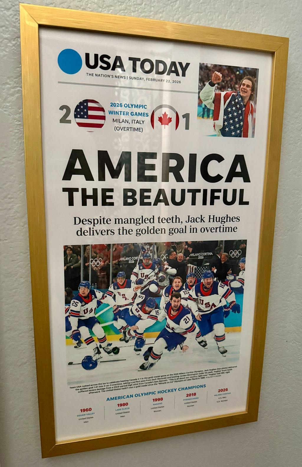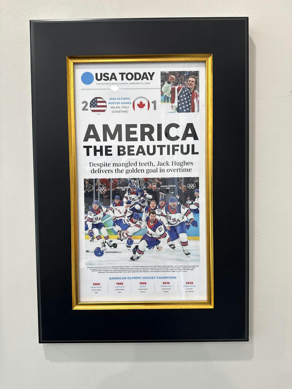 I poignant reminder of a highly-charged matchup for the gold medal. Excellent packaging and a quick turnaround time! Framing color was my choice, and apropos.
